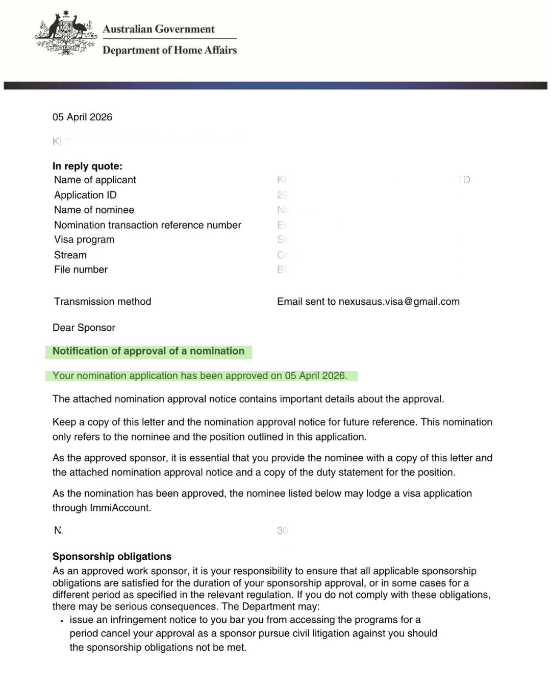 January 6, 2026nexus immigration is one of the most trusted migration agency in aus That have holes my. Business on hold 07 immigration Visa as I had cases done with them as a candidate, as well as my own business both ways the knowledge base that Robin Gill has as well as his team has lost but excellent thank you guys for helping me out and I wish you lots of love & luck